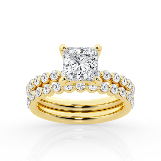 Bubble Ring with Princess Center – 14K Yellow Gold, 2.39 ct